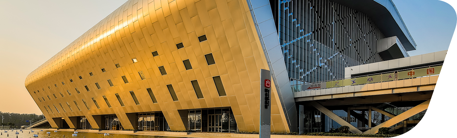 場(chǎng)館以“山水相依、五省通衢”為理念,采取山環(huán)水抱、山水相依的規(guī)劃格局